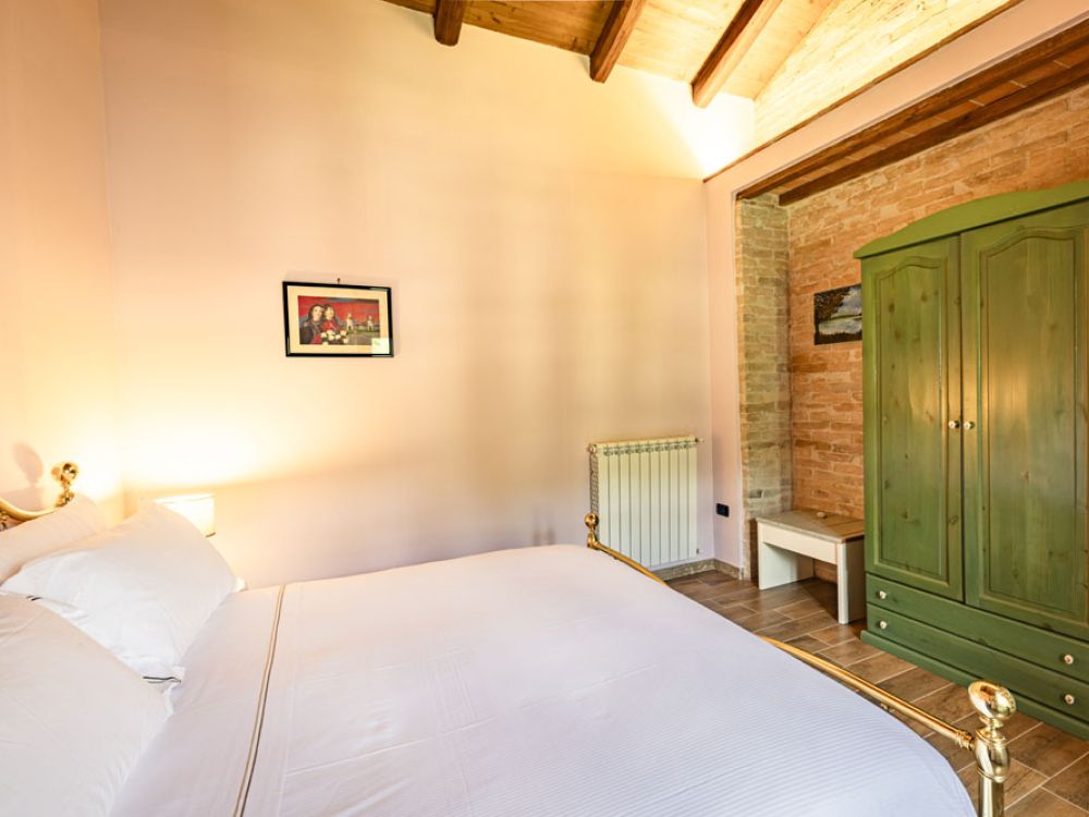 Situato al primo piano del casale "Quercia", questo appartamento è raggiungibile tramite una caratteristica scala esterna, che conduce ad un corridoio comune condiviso con l’appartamento Calla.